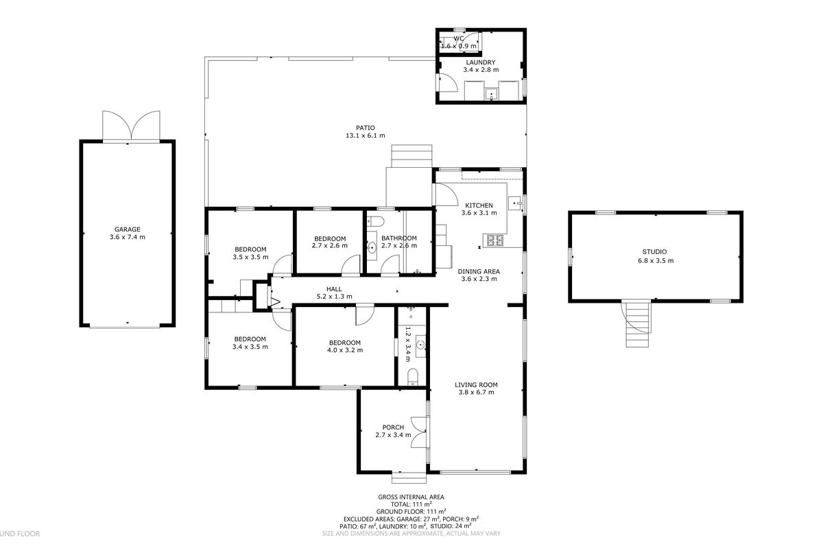 The original kitchen offers ample cabinetry for storage servicing the dining area with air-conditioning, plus the benefit of a separate living room. There are four bedrooms - one with a built in robe, beautiful new bathroom and the benefit of a second outside toilet. The amazing alfresco area gives you the benefit of entertaining year round and an external studio that can be used for storage or extra space.